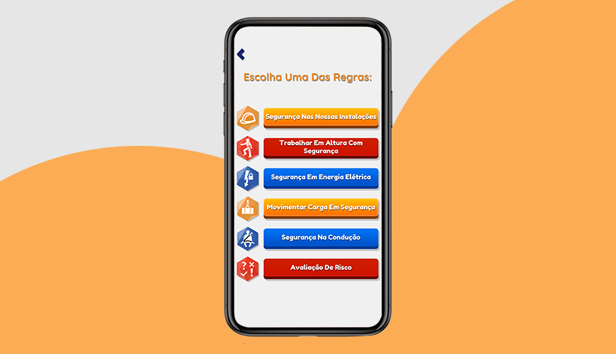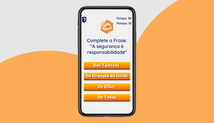 Um de 3 aplicativos que desenvolvemos para o Departamento de Saúde Segurança e Ambiente da Unitel. Este jogo em forma de Quiz serve para testar e garantir que os funcionários tenham as regras de saúde e segurança no trabalho bem treinadas e em mente.